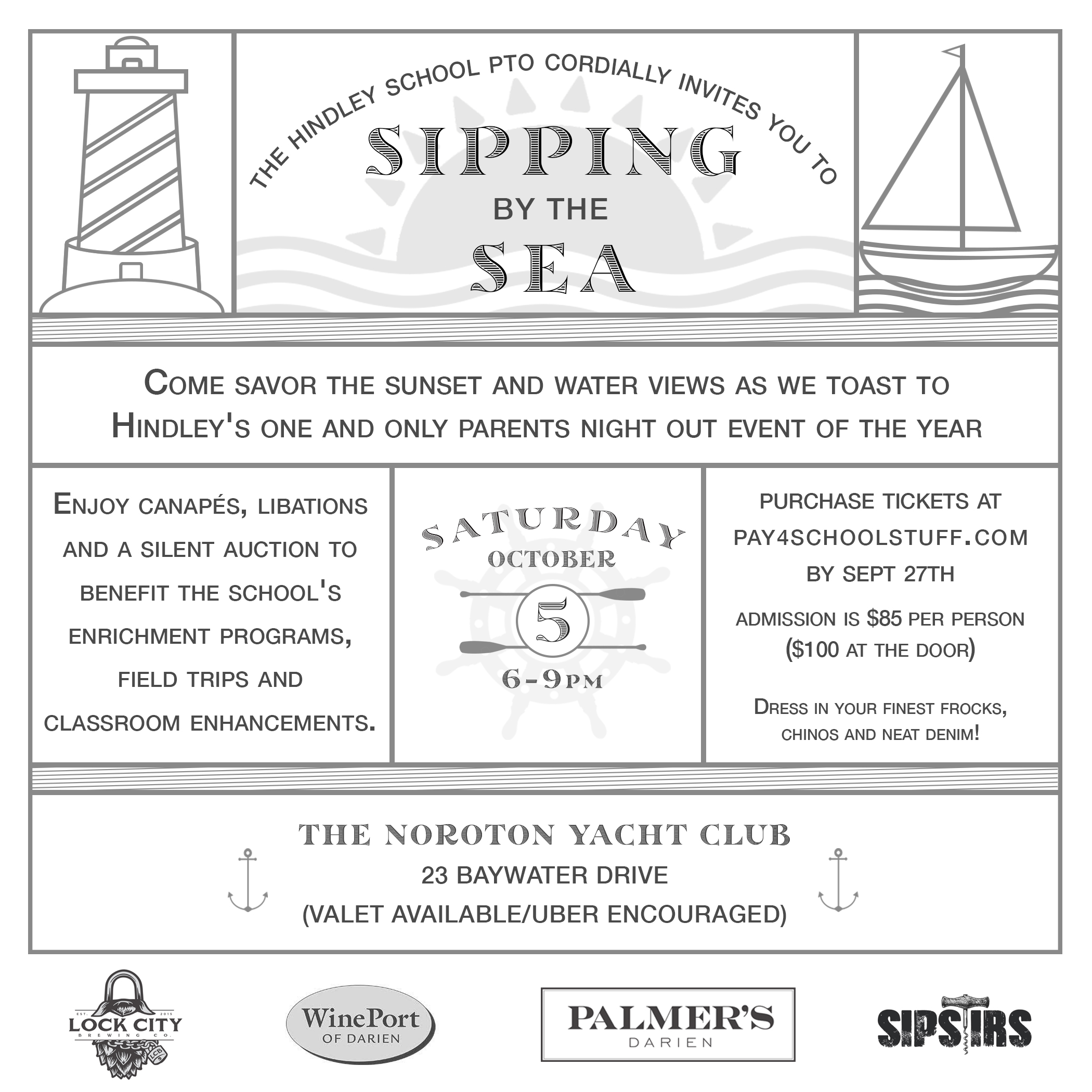 Please join us on Saturday, October 5th from 6:00 – 9:00 pm at the Noroton Yacht Club to savor the sunset and water views as we toast to Hindley’s one and only Parents Night Out event of the year. Enjoy canapés, libations and a silent auction to benefit the school’s enrichment programs, field trips and classroom enhancements. Admission is $85 per person or $100 at the door. Purchase tickets at pay4schoolstuff.com.