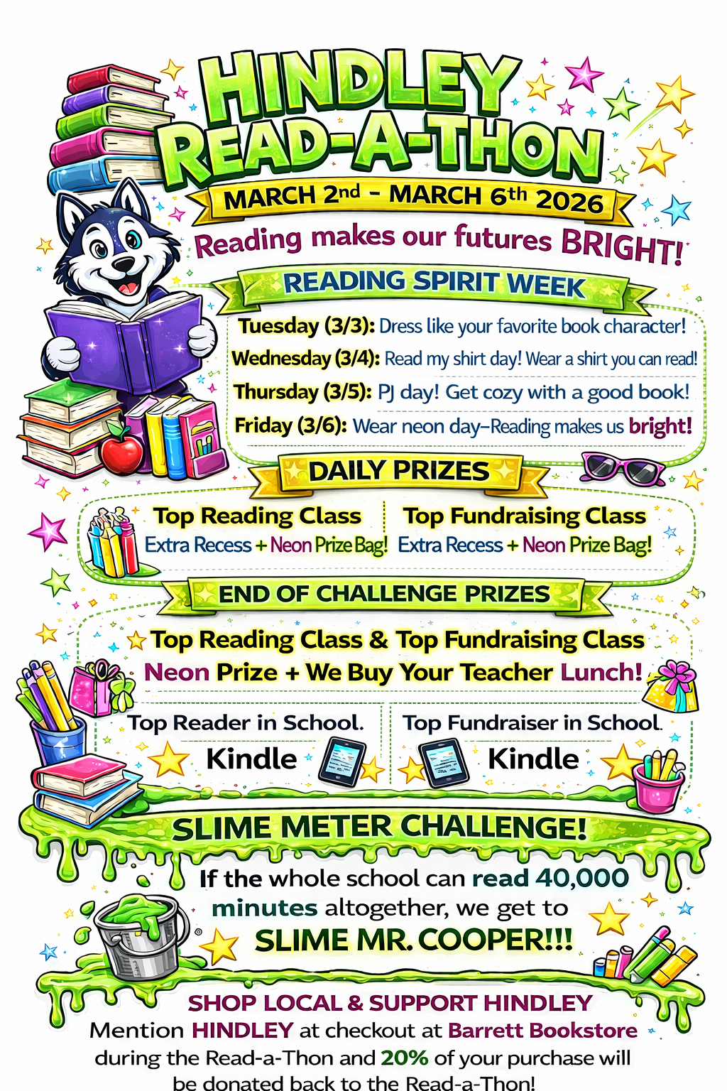 Get ready to glow during Hindley’s first annual Read-A-Thon fundraiser… Reading makes our futures BRIGHT!!!