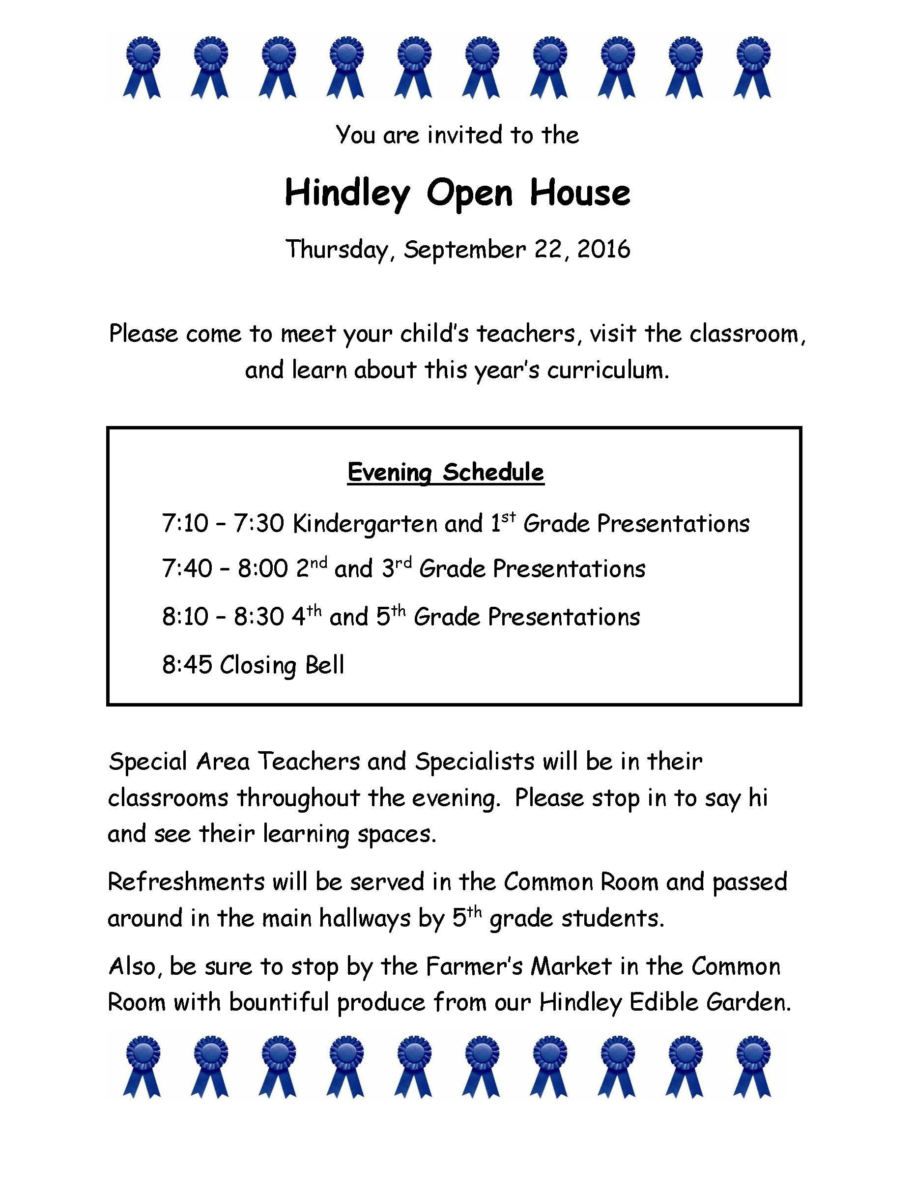 Open House Schedule 2016