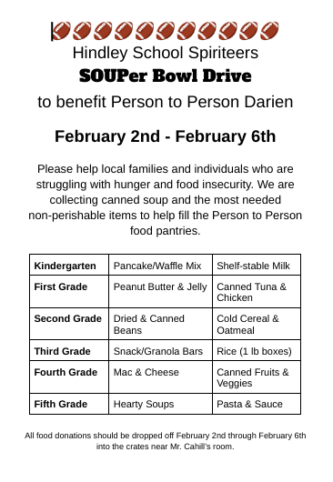 Student Council’s SOUPer Bowl Food Drive for Person to Person | February 2nd – 6th