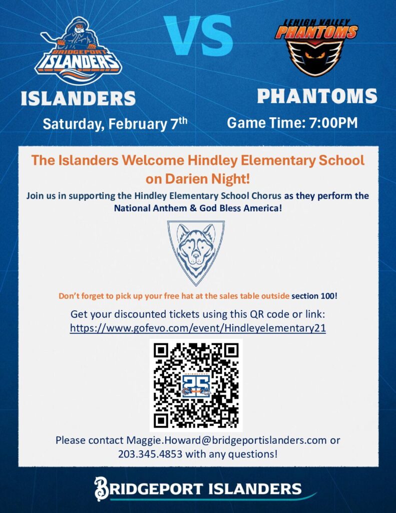 Come out and join Hindley on Darien Night with the Bridgeport Islanders! The Bridgeport Islanders will take on the Lehigh Valley Phantoms on February 7th at 7:00 pm.